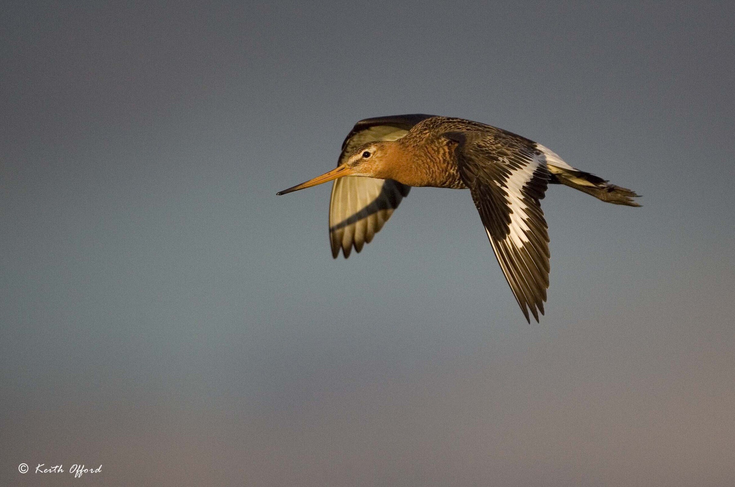 The long days in the Icelandic summer give great chances for photography - this Black-tailed Godwit was photographed at 10.30 p.m. This is the Icelandic race, the deep chestnut exteding well down the belly.