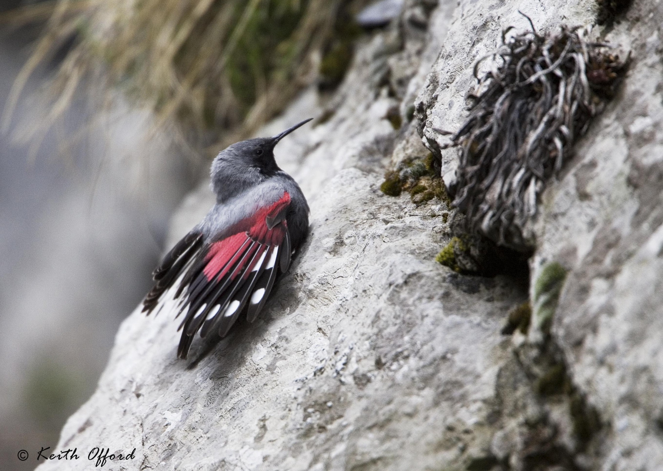 The flicking crimson wings of the elusive Wallcreeper help reveal it on vast cliff faces.