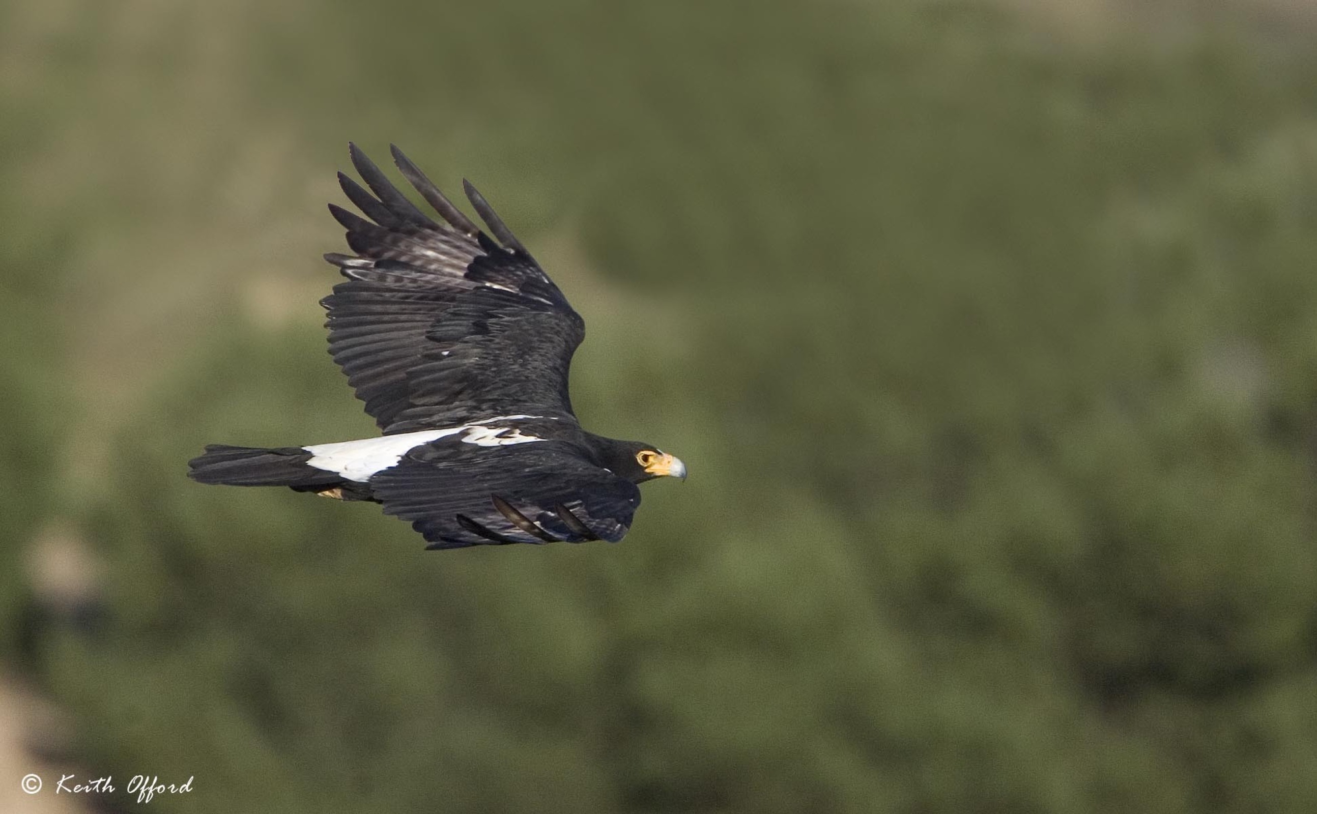 This massive eagle primarily feeds on Rock Hyrax which it hunts by flying low along escarpments and catching them by surprise. This adult was photographed in the Western Cape as it cruised below me, showing the extensive white areas on the rump leading to a 'v' shape on the mantle.